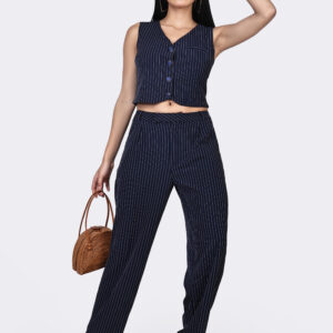 Elevate your power-dressing game with our Pinstripe Vest & Trouser Co-ord Set. This set reimagines traditional menswear-inspired patterns into a feminine, contemporary look. Whether you’re heading to a rooftop brunch or a creative workspace, this outfit offers a sharp, polished aesthetic with a hint of playful midriff.